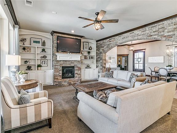 Incredible home on nearly 1/2 lot in Carrington Lake! Over 4000 SF to include 4 bedrooms, formal dining room, study, game room, and a theater room! Beautiful upgraded lighting accentuates this sprawling two story, split bedroom home. The spacious kitchen features a center island, gas range, bar seating, casual dining space, and an amazing pantry complete with a built in desk! Formal dining and butler's pantry make entertaining a breeze. Upstairs is a large game room with a half bath and wet bar with beverage fridge and opens to the theater room. The huge backyard features a gorgeous pool, custom landscaping & pergola with electricity, outdoor kitchen with grill, and plenty of extra room for play structures, etc. The pool has a removable fence surrounding it for added security. Side entry 3 car garage with storm shelter completes this home.