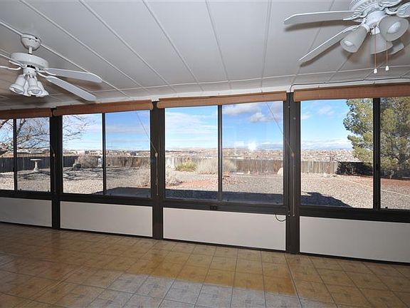 Charm and comfort in the heart of Rio Rancho! Terrific floor plan, great room with kiva fireplace, spacious kitchen, breakfast nook, terrific bonus sun room (255 sf) has wood stove, master bedroom has covered patio access, laundry room is not in garage, lots of windows light, bright and open. Huge 1/4 acre lot fully landscaped backyard with views, storage. Garage has cabinets, utility sink, exterior access. All appliances stay. Close to parks, shopping, schools, walking trails.