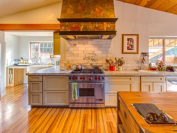 Country living in a modernized home, 20 acres with a great usable flat, privacy, sunshine, a huge 2800 square foot barn, another 400 square foot bonus room, two wells, and connected to public power!! This stylishly remodeled home was updated in 2016 with taste. Open kitchen with concrete countertops, statement range/hood ready for you to cook up the fresh veggies from your own garden. This home is a must see and is close to paved road/suitable for year round living. Lots of decking and views too. Been thinking of raising animals? There is room for that too. Get away from town and feel the sunshine! 10,000 sq ft cannabis license is active.