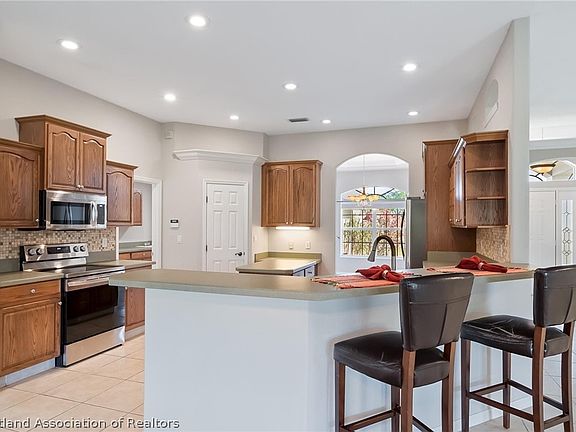 Custom-built 3BD/2BA home plus office, with over 2300 living space. This home is situated in one of the most popular areas in Highlands County-Sun N Lakes and is surrounded by newer homes. Freshly painted inside and out, spacious kitchen, multi-level cabinets, brand new LG stainless appliances, wrap around high bar and an island. Tray ceiling with crown molding in the owner's suite, his and her vanities, block glass that provides natural lighting, garden tub, tiled shower and a large walk-in closet. Separate dining area, breakfast nook, 14 x 18 office, 2 additional private bedrooms, in house laundry room with upper cabinets, wash tub and extra storage space. Oversized garage with a golf cart bay. Additional updates include: New roof 2022, AC 2017, garage door opener, fans, vinyl plank flooring in the bedrooms and much more. Large screened back porch, beautiful curb appeal, mulched and landscaped. This community offers: 2 championship golf courses, tennis courts, fitness center, swimming pool, a restaurant and much more. You are going to love this floor plan. Move-in ready. Priced to sell!!