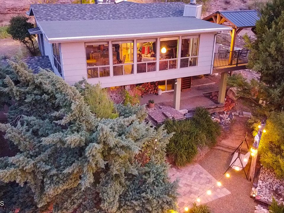 What a rare find - solid 1982 construction but with all the tasteful improvements of a 2015 renovation! Nearly everything but the wide galley kitchen was given new life, and lovingly maintained by the owners -all centered around that show-stopping view to the West. This house is a home. From the Arizona Room, all windows of course, step out onto your large composite deck with a gorgeous cedar pergola and take in sunsets, crisp night skies, deer running by, and lush trees running along Beaver Creek. Or take Take a short walk from your property and just over the hill is Theony Pueblo - ask Verde Valley Archaeology about it! You'll enjoy plenty of parking, as your detached 1-car garage/workshop, off-street parking, and carport space has given way to the old garage being converted into a second bedroom and den/study (adding additional sq footage, verify sq footage if material to buyer) each with separate outdoor entrance, baseboard heating, and foundation sealed block construction. Yes, both stories were stylishly reimagined - pristine white kitchen, built-in electric oven, electric stovetop, dishwasher, large sink, fireplace insert in the living room, clean vinyl plank flooring, tasteful tile work throughout, warm carpet in the bedrooms, landscaped back yard with drip system, and all those finishing touches in the front. The breezeway takes you to your quiet patio lined with trees, and down red brick pavers to your detached garage. Explore over a half-acre of seclusion. The 2 Stage heat pump, 2 years old, saves you energy, along with the treated windows, especially for the Bright Arizona room. Heating and cooling is on wifi. Master bedroom has its own private escape to the grassy back yard. Your master bath has a double vanity, jetted tub, and separate (artfully tiled) shower. And don't forget that view - you'll just have to see it.