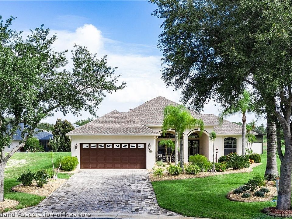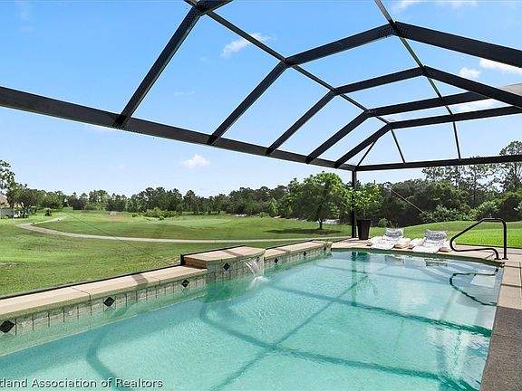 EXQUISITE, GOLF COURSE, POOL HOME OFFERING STUNNING VIEWS! This 3 Bedroom + Office home is situated on a spacious, cul-de-sac lot overlooking hole #16 of the North Course at Highlands Ridge. Upon arrival, you are greeted by a stone paver drive, manicured landscaping with decorative concrete curbing, and a charming, yet large, covered front porch entry. Step through the beautiful leaded glass front doors to a grand view of the expansive lanai, patio & pool area, plus golf course beyond. The great room, with large pocket sliding glass doors, opens to the covered lanai extending your living space to outside. The kitchen with two pantries, pull-out drawers & stainless steel appliances, offers ample cabinet & counter space with a center island & long breakfast bar. The adjacent dining area provides the perfect space for enjoying family meals, and also opens to the lanai. On one side of the home is the luxurious primary suite with his & her walk-in closets and ensuite bathroom with dual sinks, a large walk-in shower & private water closet. Adjacent to the primary suite is a bonus room or third bedroom with two closets. There is an additional bedroom and full bath located on the other side of the home offering comfort and privacy for guests or family members. French doors off the foyer lead into a home office, and a huge inside laundry room with sink, cabinets & storage closet is conveniently located off the kitchen, adjacent to the two-car garage. Outside, the expansive lanai, pool & patio area beckons for endless hours of relaxation & entertainment. Take a refreshing dip in the sparkling pool, bask in the Florida sunshine on the patio, unwind in the shade of the covered lanai, or enjoy a backyard bar-b-que from your outdoor kitchen; all while taking in the captivating views and sounds of the surrounding nature. This home offers the perfect blend of indoor comfort and outdoor paradise. Additional features include new wood laminate flooring, recently painted interior & exterior, weather-proof cabinets in outdoor kitchen & bar with granite countertops, plus Clearview screening surrounding the pool, patio & lanai, offering unobstructed views. Don't miss your chance to make this exquisite retreat your own!