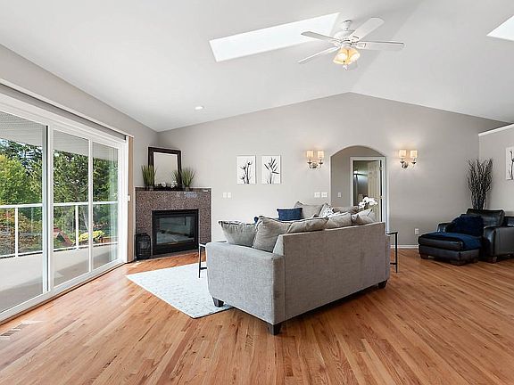 Spacious 4000SF, 5 bed & 3 bath Skyline home with water view! Natural light pours through the freshly painted interior with 9ft ceilings, walk-in closets, skylights, and 5 piece master suite. New appliances in the kitchen overlooking the dining room & expansive deck. Downstairs 2nd laundry room, walk out family room, wet bar, 2 beds, full bath, & office/flex room await. New furnace, A/C, & carpet. Attached 3 car garage, central vac, high speed internet cabling, playset & fully fenced yard.