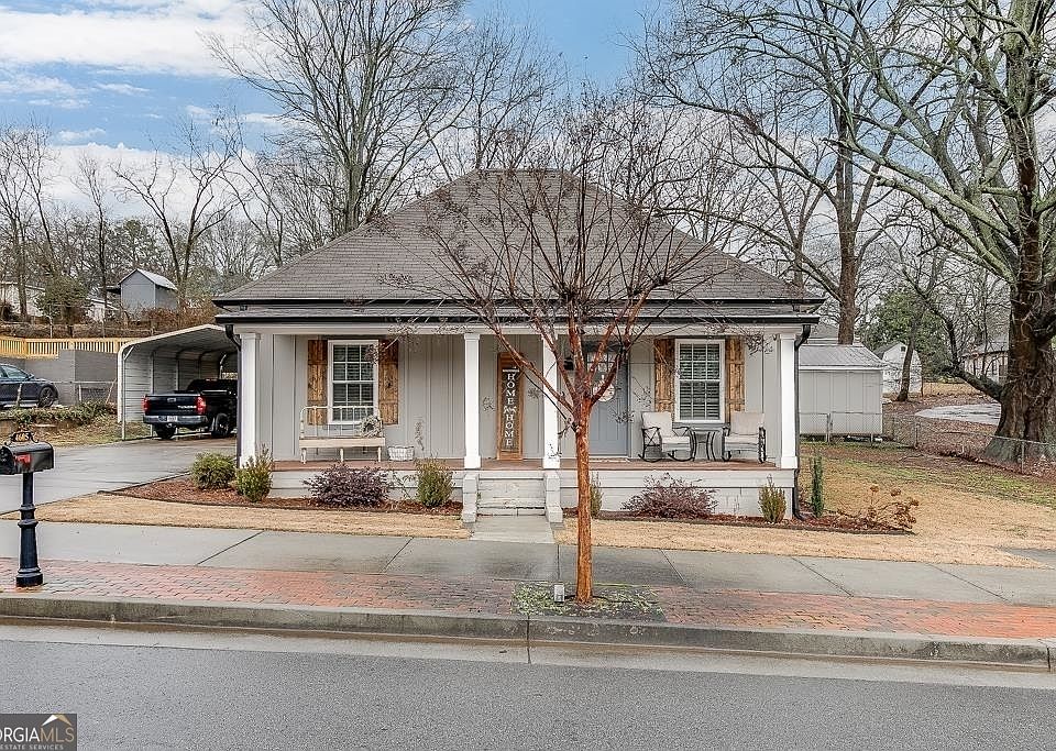 Adorably renovated, historic bungalow located in walkable and equally adorable downtown Buford! This is an incredibly convenient location to enjoy everything the community has to offer; concerts in Buford Village, all of the shops, boutiques, coffee shops, and restaurants on Main St, exciting Buford HS football games, and easy access to 985. You'll enjoy the less expensive city utilities and perks like large item trash removal too. This 2 bedroom charmer has been thoughtfully renovated and updated over the decades; love living in a 1922 piece of history without all of the headache. The oversized quartz kitchen island is the heart of the home surrounded by an antique pantry and soft close cabinets. The primary bedroom has 2 closets and extra storage in the ensuite bathroom as well with a clever pass through to the laundry room for convenience. The fully fenced backyard features a covered ground deck for grilling and relaxing, a brand new shed with electricity, and recent tree removal for easier lawn care. LED lighting, an updated electrical panel, and a tankless water heater are just a few modernized features. Move-in ready!