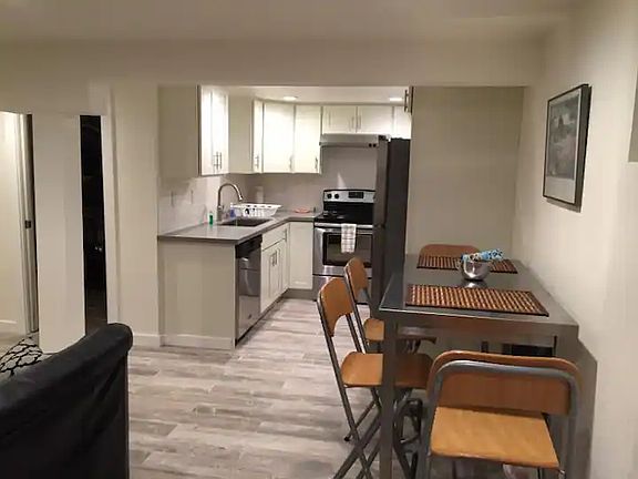 Just 5 minutes to Downtown Portland! 6-Blocks from Reed College! Rent per month: $1695.00 + Additional $200/month flat rate covers ALL utilities (water/sewer/electricity/garbage) AND high-speed internet = $1895.00/month. Duplex: Completely Private 2 Bedroom Basement/Apartment for rent near Reed College! This is a completely NON-SHARED DUPLEX LIVING SPACE CREATED OUT OF A SINGLE FAMILY HOUSE....This is a Basement/Apartment. The other living unit is above, but they are completely separate, secure and private from one another with completely separate entrances. We are offering a 2 Bedroom Basement/Apartment for rent 6 blocks from Reed College! It has its own Full Bathroom with a beautiful tiled shower, full kitchen with a full-sized stove-cooktop/oven, private (not shared) front loading washer/dryer, private and secure back-patio entrance, etc. The unit is currently fully furnished including 2 Full-sized beds, stainless dining room table with 4 chairs, leather sofa, TV, pots & pans, etc. (Note: Some or possibly all of the furnishings can be removed, if you have your own furnishings). You would be renting out the private Basement/Apartment of a house. This Basement/Apartment was completely renovated with all new electrical, plumbing, insulation, flooring, bedrooms, bathroom, and kitchen! The total living space is 640 sq/ft. 2 Bedrooms (110 sq/ft each), each with its own furnished Full-sized bed, sheets/mattress/pillows (please see photos) Full Kitchen Full Bathroom Front loading washer & dryer Leather Sofa Stainless Steel appliances including full-sized range/oven Microwave Dishwasher Smart TV Recliner Chair Excellent location! Downtown Portland is 8 minutes away! Reed college is 3 minutes away. Trader Joe's is 4 blocks away! Bus line is 1/2 block away. Many restaurants and coffee shops within a 5-10 minute walk! Rent per month: $1695.00 + Additional $200/month flat rate covers utilities (water/sewer/electricity/garbage) = $1895.00/month. $1495.00 Refundable deposit $200.00 cleaning/security deposit (non-refundable) 1- year lease preferred (minimum) No pets No Smoking (smoking allowed outside on private backyard patio)
