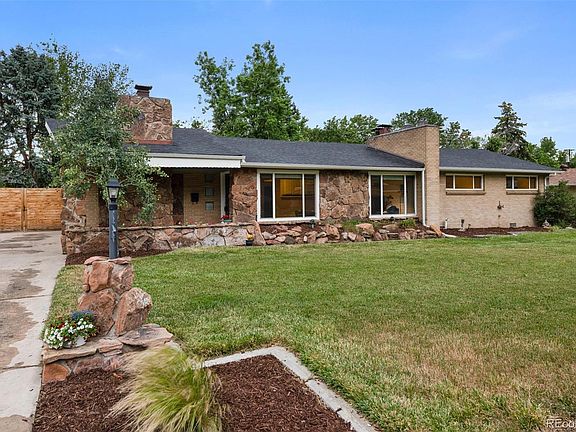 Sprawling mid-century brick ranch with over 2500 sq. ft. all on one level! Fresh paint and gleaming real wood floors. The sun-filled living room boasts distinctive coved ceilings and brick fireplace. This floor plan is perfect for modern living with large living spaces and plenty of room to work, study, relax, dine, play and entertain. So many options with a large family room, a study office area. a great bonus room overlooking the private yard. The large kitchen in the center of the home features stainless appliances, a wine fridge and a large pantry. The lovely primary suite includes a huge walk-in closet and private bath with soaking tub. 2 secondary bedrooms are also large with ample closet space. 2 wood-burning fireplaces for cold winter nights. Evaporative cooler keeps the home cool while allowing fresh air to circulate. Gorgeous pavers patio for relaxing evenings! The large lot can accommodate gardening space, a garage and your heart's desire. Excellent location near parks, trails, restaurants, breweries, coffee shops. 5 minutes to Old Town Arvada and Tennyson Art District. Easy commute downtown or to head west to the mountains.
