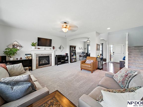 Contract Pending subject to a 24 hour first right of refusal. VA Assumable mortgage available at 4.5% interest! The home has been inspected and is ready for you to see today! Stunning 2-story in Clearwater Falls! Built by The Home Company in 2013, this Sierra floor plan offers an open main level w/ engineered hardwoods, spacious living room, espresso cabinets, granite counters, SS appliances, large island & a hidden walk-in pantry. Upstairs features a relaxing primary suite w/ tiled shower, whirlpool tub, dual vanities & huge walk-in closet w/ direct access to 2nd-floor laundry. The finished (walkout) lower level provides additional living space + a bonus room—perfect for an office, gym, or guests. Enjoy a fully fenced yard, reinforced deck, drop zone off the 3-car garage, & granite vanities in both full bathrooms. The roof and gutters are brand new! Just minutes from Offutt AFB, shopping & dining—this home has it all!