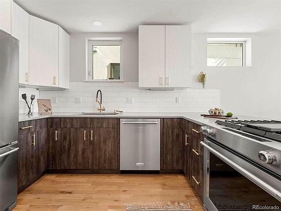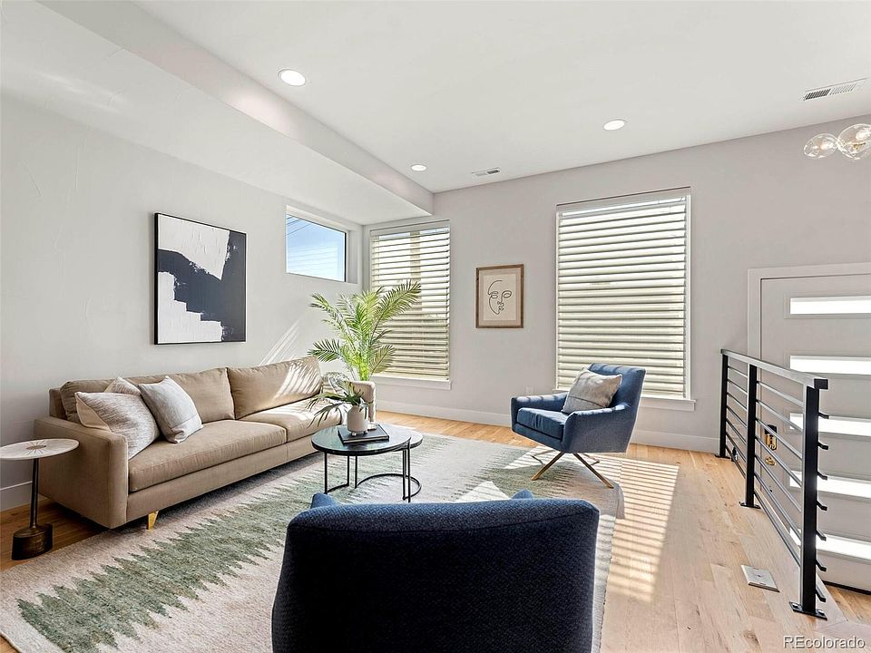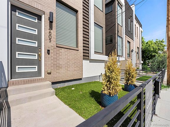 PRICE REDUCTION TO $825,000 | Modern half-duplex in Sunnyside astounds with gorgeous features, 3 beds up, and a private lower level w/ wet bar, perfect for AirBnB. The location provides outstanding access to local restaurants, LoHi/Highlands, and access to the mountains. Oversized East-facing windows with designer window treatments provide versatility for privacy and drawing in abundant natural light to the open floorplan living space and across the deluxe hardwood floors. Modern light fixtures accentuate the room's contemporary design. The open layout of the kitchen allows for easy and glamorous entertaining with eat-in island seating, stainless steel appliances, voluminous steel sink, discrete microwave, and ample counter/cabinet space. Hard to find three bedrooms up includes the primary suite accompanied with walk-in closet and en-suite bath with dual vanity sink, ample under sink storage, and cohesive white contemporary tiling from the flooring to the backsplash, and throughout the large shower. Rare large, walk-in laundry room on bedroom upper level. The lower level provides flex space to design as you see fit, with potential to be a lush cocktail lounge or an additional in-law suite. Opportunities abound to make this your own with a full en-suite spa-like bathroom and built-in cabinets featuring a sink and bar top. Expansive views greet you on the 3/4 wrap-around rooftop patio. You have the best of both worlds with a neighborhood street and bounty of many amazing local eateries in close proximity, like Huckleberry Roasters, Bacon House Social, and The Wolf's Tailor to satisfy at any hour. Supremely located near I-70 for direct access to the mountains and outdoor thrills.