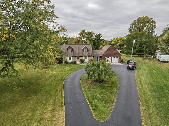 Beautiful custom built cape cod on 2.18 acres. This home is a 2584 sq ft with a 600 sq ft finished basement. 4 bdrms 2.5 baths with a first floor master bedroom and laundry room. Also includes finished attic and a sitting room off the master bedroom. Hardwood floors throughout the first floor. First floor is an open concept plan with a nice sized living, dining and family room. the kitchen is large and open with a planning desk, center island and an abundance of cabinets. This home is fantastic for entertaining with its park like features including a balcony deck and huge patio. There is also a 24'x25' out building as well. Nice and peaceful country living yet close to shopping and restaurants and Chestnut Ridge Metro park. 2.18 acres includes parcel number 0090169120 which is .8 acres