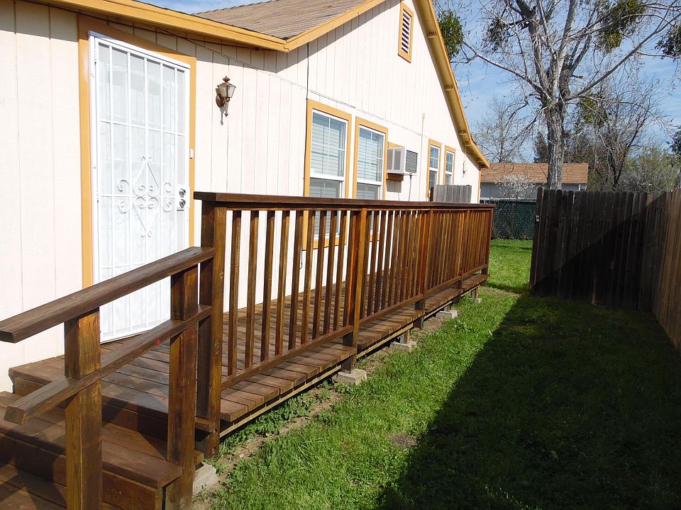 Cute bright standalone house with fenced back yard better than an apartment. Uncovered off-street parking. 3 Bedrooms 1 has walk in closet. Bathroom has tub/shower. Washer and Dryer in laundry room. Tile at front door, kitchen and laundry and bath. Utilities paid by owner: water, garbage, security system. Renter pays electric and gas. Interiors clean fresh paint professional cleaned carpets. Outside of house being painted. Small/med dog or cat OK on approval extra deposit required if approved. A non-smoker house, prefer non-smoker. 1 year lease requested. 2 adults max, 3 total persons. Will consider pets, extra deposit applies ($100 per pet, 2 max). Electric and gas responsibility of renter and paid directly to PG&E utility company. Garbage, water, and security system paid by owner. Have proof of good rent payment history and regular income.