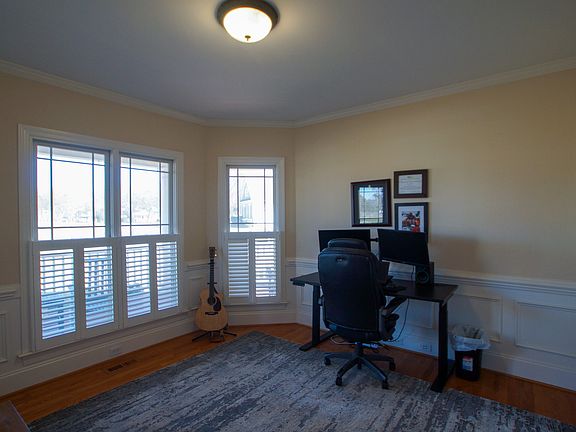 Attractive 4 bedroom/3.5 bath, 2 story home (Large Dog friendly) with wonderful curb appeal features a large wrap around porch with screened in section perfect for dining/entertaining and a huge, newly fenced, pet friendly backyard with mature trees. Great location is a short drive to shopping, restaurants and Lake Benson park with multiple playgrounds, spacious dog park, and boat rentals. Only five minutes from entrance to newly section of I-540, which allows fast, low traffic access to most areas of the Triangle. Hardwoods on the entire first floor, which includes a spacious office featuring bay windows, plantation shutters and French Doors. Large kitchen with maple cabinets, breakfast bar and tile backsplash. New modern lighting in the entire downstairs, plus a handsome fireplace in the family room. Modern appliances including washer and dryer in separate downstairs laundry room. Beautiful wood staircase leads to 3 generous upstairs bedrooms, plus a bonus 4th bedroom with a walk-in closet and full bath. Partially finished third floor and 2 car garage large enough for work benches/extra storage.