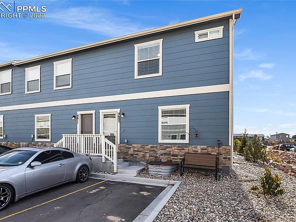 Beautiful End Unit! Two-year old home that has been well-cared for with a two-car attached garage. As you enter through the living room you'll notice it flows seamlessly into the kitchen with two-year old appliances and central AC. The spacious primary suite includes an attached private bathroom with bathtub, walk-in closet, private toilet, and double sinks. The upper level also offers two secondary bedrooms that are full of natural light and they share a bathroom with tub/shower combo. This is a home where you can grow into all the storage space it offers. The finished basement is currently used as an entertaining/workout room but could be a guest suite with with full bathroom, movie theatre room, office or many other possibilities. A two car garage gives you modern convenience and extra storage. All rooms have been wired for ceiling fans if you choose to install them. This home in Bradley Crossroads has easy commutes to schools, I-25, many military operations, Powers corridor, and is only approximately 15 minutes to downtown Colorado Springs. We can’t wait for you to explore and fall in love with this home.