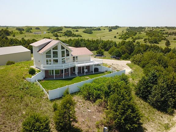 Welcome to the lake! This property sits about 0.5 mile from the Calamus Reservoir and offers unobstructed 180 degree views of the lake from the living room and front porch! Enjoy the beautiful Sandhills sunsets from this vantage point. The property is also in close proximity to two boat ramps and beach areas. Need storage for all your lake toys? This property has you covered with a 42 ft x 72 ft Cleary building.LandThe home and shop sit on approximately 0.71 acres, the home sits at the top of the hill to offer a great vantage point of the Calamus Reservoir. The shop sits at the bottom of the hill and has a separate drive to the building. There is nice landscaping around the home and the lawn is watered utilizing underground sprinklers with water from the community well. The property has its own septic system. Potential for neighboring lots to be sold to purchaser of this property. ImprovementsThis home (built in 2002), sits along the south-central part of the Calamus Reservoir and offers unobstructed 180 degree views of the lake. This expansive home can accommodate several vacationing families with 3,745 total finished square feet, 5 bedrooms, 3 full bathrooms and a separate kitchenette and living room in the walk-out basement. The home would also make a great full-time residence! Be ready to be blown away by the amazing views from the large floor to ceiling windows in the living room. All windows are Pella and the bottom row of windows have built-in blinds which help to regulate heat and offer privacy when needed. The home offers an open layout between the kitchen, dining and living area creating a comfortable environment for entertaining and family gatherings. The main level is 1,541 sq ft and consists of 2 guest bedrooms, a full bathroom, linen storage, mudroom/laundry room off of the garage, pantry, propane fireplace in living room and access to the top deck. The kitchen features hickory cabinetry, onyx countertops, a propane range with convection oven (2016), and an eat-in island. The upper level is an additional 663 sq. ft. and consists of the master suite! The master bath has double vanities, a tub/shower combo, marble floors and its own wall heater. The lower level features a walk-out basement with an additional 1,541 sq ft. On the lower level, you will find walk-out access to the private backyard, a kitchenette area that opens to the living area, 2 additional guest bedrooms with egress windows, a full bathroom, a large storage room, utility room, propane fireplace in living area and additional storage closets. All appliances stay with the property. The backyard is fenced-in which offers privacy and added safety for kids and pets! Enjoy swinging on the porch swing while your burgers cook on the grill! Listen to some music too with the built-in surround sound speakers found in the main level living, basement living area, and upper and lower outside decks. The home also features an attached double car garage that is 24 ft. x 24 ft. The 42 ft. x 72 ft. metal, pole frame building built in 2017 is truly a great addition to the property! Perfect for storage of all those lake toys and other necessities! It has a full concrete slab inside and leading up to the building. There is also electrical and a 220 volt outlet that can be used for campers, welders, etc! The building has 16 ft. side walls and the automatic overhead door is 12 ft. tall by 12 ft. wide. Updates to the property include: Pella french doors with blinds (2017), copper shake metal roof with lifetime transferable warranty (2017), tile floor in basement (2017), new leach field (2017), new control box and added stations for underground sprinklers (2017), new furnace and a/c unit (2019), Pella windows throughout (2021) and cedar and dead tree removal (2021). Showings are by appointment only. RecreationLocated in the beautiful sandhills of Nebraska, Calamus State Recreation Area is among the most popular places for fishing, boating, picnicking, camping and hiking in the state. The Calamus SRA features a 5,123 acre lake and a surrounding 4,958 acres of gently rolling land, covered with native grasses and forbs. The most popular species sought by anglers are walleye, white bass, wipers (white/striped bass hybrid), carp, channel catfish, muskie, drum, northern pike and crappie. In addition, catchable rainbow trout are stocked regularly in the adjoining Gracie Creek Pond. All types of boats are permitted at the lake, which offers four docks and five ramps. Swimming is also permitted. Dining, snacks, groceries, boat rental, bait and other sundries are available. Another highlight, one of Nebraskas five fish hatcheries is located at Calamus State Recreation Area. Located below the dam, the hatchery has self-guided tours and displays on raising fish and other topics. Some 1.2 miles of the Calamus River and 3.5 miles of other streams also meander through the area. LocationUnfamiliar with the area? Aside from all the fun to be had at the lake, there are several other amenities to be found in the nearby towns. The town of Burwell, NE (11 miles to the SE) offers boutique shopping, hardware/lumber store, restaurants, movie theater, bowling alley, gas stations and more. You can also look forward to the NE BIG Rodeo every July (one of the world's largest outdoor rodeo arenas)! You will also want to visit Taylor, NE and see "The Villagers". There are also several breweries nearby for you beer connoisseurs. If you want to know more about the local area, just reach out!