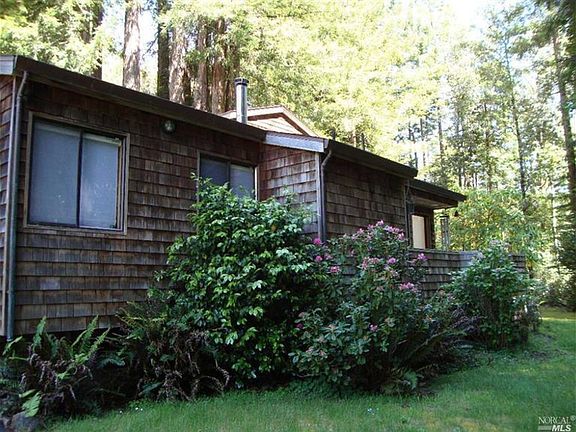 Charming country home with a convenient location in Gualala. 2 bedrooms, 2 baths, and master loft. This home has many upgrades including granite countertops, open beam construction, VG fir trim, Fisher wood stove, and warm narrow plank oak hardwood floors. A large 30x36 garage sits on the property with insulation, finished sheet rock, 220 wiring, and separate meter. Great parcel with mature redwoods, orchard, and rock patio.