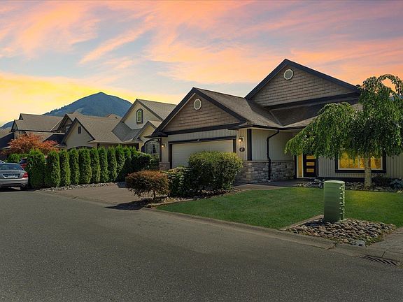 Is a home with a VIEW on your WISH list? Located on sought-after Bridle Ridge Crescent, this beautiful home in River Vista Estates boasts one of the BEST VIEWS in all of Chilliwack! Enjoy all-year round breathtaking panoramic views of the Chilliwack River Valley with easy trail access to the Vedder River. This Rancher-style home w/ finished basement, features 3 bdrms on the main, formal dining room, open kitchen/family room w/ gas fireplace & access to large deck to take in those spectacular views! Central A/C + NEW dishwasher/washer/dryer. Downstairs has lots of extra living space, up to 3 additional bdrms if needed + custom built-in Cedar Sauna! Lots of room for an in-law suite or large, growing family. Located on a quiet, no-thru street, make this stunning VIEW property your new home!