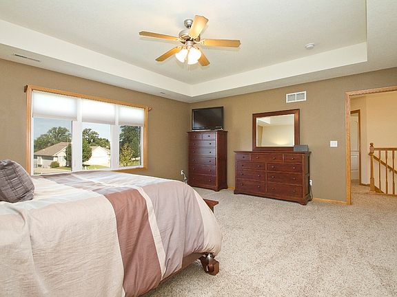 Immaculate Two Story in great location w/Waukee Schools! Open entry w/hardwood floors. Spacious updated kitchen w hardwood floors, gorgeous granite, stone tile back splash, under cabinet lighting, pantry cabinet, SS appliances, breakfast bar & casual dining area leads to maintenance free deck & backyard. Huge over-sized MBR suite w/tray ceiling & large walk-in closet, Master bath w/jacuzzi & double vanity. Finished daylight lower level includes 2nd family room. Over-sized 3 car garage w/new doors w/windows, beautiful custom stained glass window inserts in kitchen & by entry, prof landscaping. Beam Quiet series central vac, new maintenance free composite deck & railing, casement window treatments, freshly painted interior, new carpet & pad, new fixtures. Great location next to cul-de-sac.
