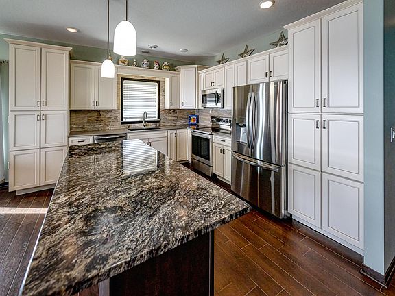 Fantastic two bedroom, two bath rambler with an open floor plan. Spacious kitchen offers custom cabinets with soft close doors and drawers, center island, quartz and granite countertops, backsplash and stainless steel appliances. Large living room with tile floors, gas fireplace and 9 foot ceilings. The master bedroom offers an office, walk-in closet, master bath with granite countertop and tile walk-in shower. 2 zone in floor heat in house and garage. Everything you need all on one level!