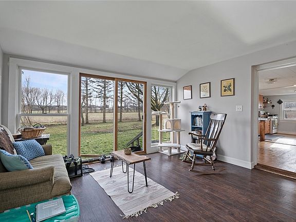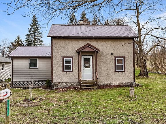 Welcome to your modest starter home located in a highly sought-after area. This property offers the perfect opportunity for first-time buyers seeking affordability.  Nestled in the desirable Trumansburg area, this home may not boast lavish features, but its charm and convenience make it a hidden gem. Take comfort in the new septic, metal roof, solar energy, vinyl replacement windows, spray foam basement, and tankless on demand water heater. Inside, you'll find a cozy living space with natural light streaming through the windows. The kitchen provides functional space for meal preparation overlooking the dining area, while the two bedrooms upstairs offer a comfortable retreat at the end of the day. The living room has a cozy wood stove and the flex space upon entry offers so many possibilities!   Enjoy your 1 acre with gardens, a tree house, a (sometimes seasonal) stream and two car detached garage.