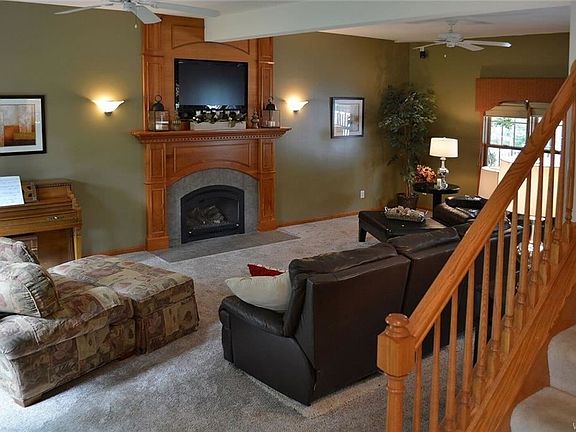 This Colonial in Starpoint District is one you don't want to miss! This 4 bdrm, 3.5 bath includes beautifully finished walkout basement w/patio door/windows could be used as in-law setup/home office w/separate entry. The kitchen features cherry cabinets w/island, Corian counters w/built-in pantries and hrdwd floors. The Great Room has custom fireplace mantle and 9'8" ceilings. Master bdrm has his/her closets w/built-in shelving/drawers. Master bath has custom 2-person shower w/body sprays and rainshower and large soaking tub. A private wooded backyard completes this home w/25x35 stamped patio w/stone grill island and 14x35 two-story composite deck w/canvas awning. Relax in the heated above-ground pool w/separate composite deck and slide. Plenty of storage in 12x18 Amish-built shed.