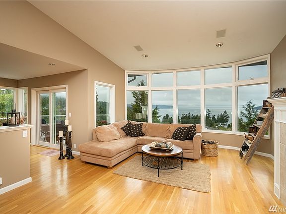 One level living with fantastic 180 degree views of Olympic Mountains, Burrows Bay & Strait of Juan de Fuca. Southern exposure brings light and warmth into the home while high ceilings and large windows provides a spacious feel capturing the amazing views from dusk to dawn. Open floorplan, updated kitchen, shaker style cabinets, under cabinet lighting & granite counter tops. Updated master bath, walk-in shower, his & her walk-in closets. Serene garden with waterfall feature. New roof 2018.