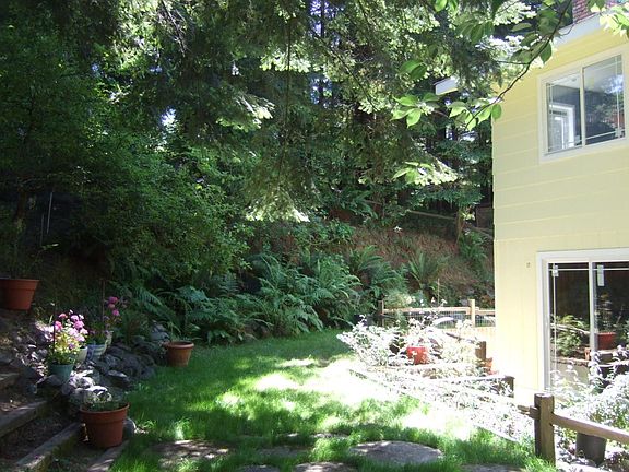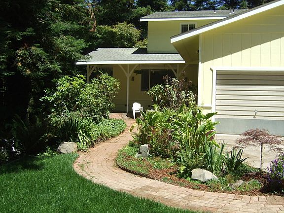 Accepted contingent offer with seller right to cancel with 45 days notice.Ultimate privacy, nestled in redwood & fir tree groves, minutes from town or golf. Decks & patios provide areas for outdoor entertaining surrounded by native flowers, plants & trees. Park trails throughout. Extensively remodeled & updated over the last 10 years, gives a very modern & custom feel. Family room with brick hearth fire place next to remodeled kitchen, cabinets, counters and flooring. Newer windows, recessed lighting & paint inside & out. Formal dining room currently houses a pool table. and the ultimate man cave (installed by the tenant) in the extra deep 2 car garage plus storage.