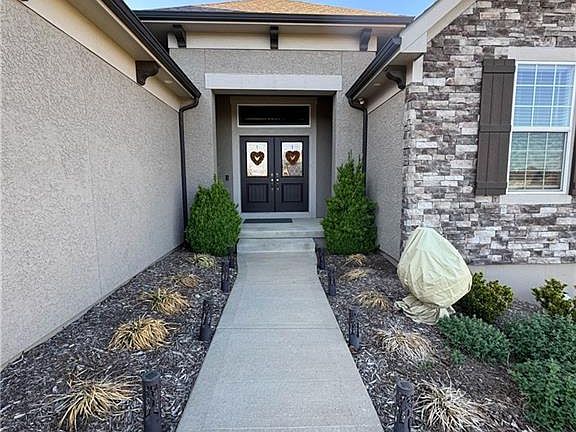 Step into a modern reverse 1 1/2 story home. This 4-bed, 3-bath is ideally located. It has a charming entry, a private fenced yard and additional stone accents. The inside features soaring ceilings and oversized windows for natural lighting. The heart of the home includes a chef’s kitchen, kitchen island, and stainless steel appliances. Just off the kitchen, a well-designed mudroom keeps daily life effortlessly organized. The main-level primary suite features a zero-entry walk-in shower connected to a generous walk-in closet and laundry room. A second mainfloor bedroom offers versatility for guests or a home office. Downstairs, you'll find perfectly sized bedrooms alongside a spacious finished walk-out great room. Created for effortless entertaining, the outdoor living space is just as impressive with a patio—ideal for year-round gatherings. Enjoy Overland Ridge's community pool. Quick & easy access to highways, schools & shopping.