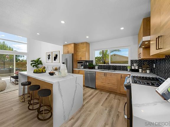 Rarely available 5 bed 3 bath home located in the highly sought out University City Community. Completely remodeled custom home includes: Open concept high vaulted ceilings, oversized kitchen island with waterfall edges, custom bamboo cabinets, modern tile backsplash and brand new stainless steel appliances. Bathrooms are finished with Calcutta stone slabs, custom vanities and a master retreat that boasts designer tile. New roof, HVAC, water heater, interior/exterior doors, and energy efficient windows. Home sits perched on the hill boasting views and a huge corner lot. Brand new high end low temperature turf installed created a low maintenance energy efficient yard. Centrally located to everything in San Diego. Minutes to community Park, UTC mall, UCSD, hospitals, freeways and La Jolla state beach. This is a must see!