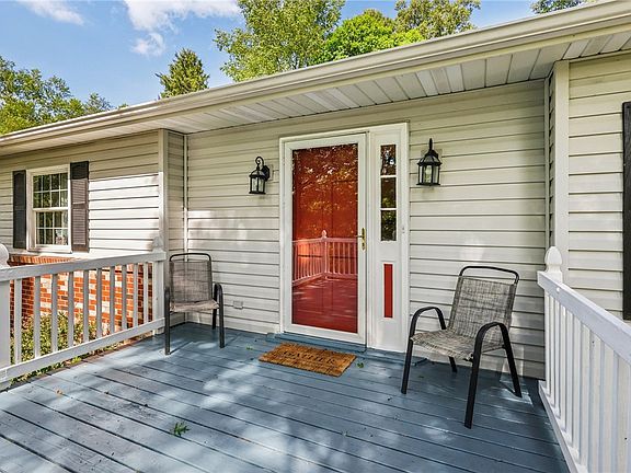 Charming 3-bedroom, 2-bathroom raised ranch nestled on a spacious 1.6-acre lot. This home combines a classic brick and vinyl siding exterior for enduring appeal. Enjoy family meals in the cozy eat-in kitchen, complete with island, or relax in the expansive living room. Outdoor living is a breeze with a welcoming front porch and a serene back patio, perfect for entertaining or unwinding. The property boasts two versatile outbuildings, ideal for storage or hobbies. The full basement offers ample potential for additional living space, workshop or future integral garage. Don't miss this opportunity for country living in this convenient location.