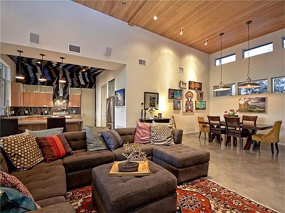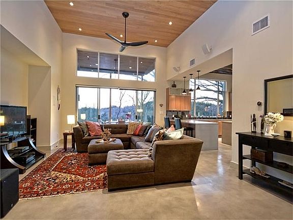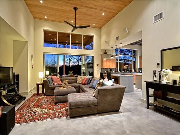 Amazing Modern home in Western Trails walking distance to Central Market. Great location!! Minutes from downtown! This 3 bed 2 bath home w/ pool & big .31 acre lot backs to greenbelt w/ stunning sunset views. This 2012 built home has all the upgrades you could want; ultimate privacy, high ceilings, walls of windows, gorgeous master bath, concrete counters, stainless steel appliances, spray foam insulation throughout, tank-less water heater, huge covered patio, surround sound, cabana, & more. MUST SEE!