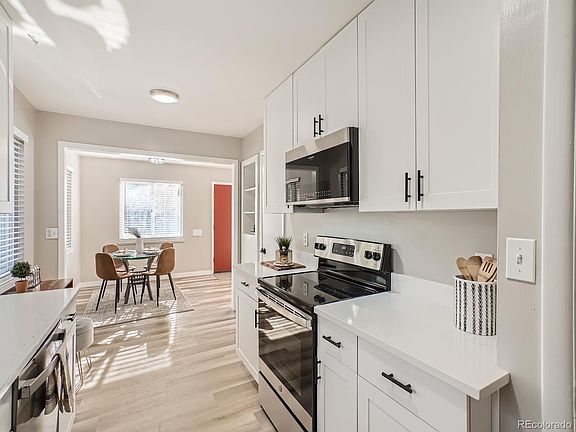 Welcome home to this charming ranch on a quiet street in a desirable neighborhood! You are going to adore its fully remodeled kitchen featuring modern amenities and style including luxurious quartz countertops, stunning shaker slow close cabinets, and all new stainless steel appliances. The kitchen flows seamlessly into the dining room & great room which provides one of several spaces for relaxation and entertaining guests. Its light and bright open layout makes for a relaxing and inviting atmosphere. The basement has a spacious family room that you will love for movie night, entertaining friends, and relaxing. The basement has ample storage space & large laundry room. With over $125,000 in thoughtful upgrades & improvements, this remodeled home is truly impressive! All of the big ticket items are newer with all new HVAC, electric panel, windows, and sewer line! You'll appreciate the versatile enclosed patio - a great heated/cooled multi-purpose space that can be used in all of Colorado's seasons! The back yard is a great size & is ready for your Summer BBQ's and backyard parties. This home is in a great location within walking distance to parks, trails, shopping, schools, restaurants! Other updates include high quality LVP flooring, exterior & interior paint, upgraded bathrooms, light switches and outlets, lighting fixtures, new concrete in back yard, new fencing, custom front railing & more!! Brand new windows have been ordered and will be installed before closing! Schedule your showing TODAY before this opportunity passes you by!