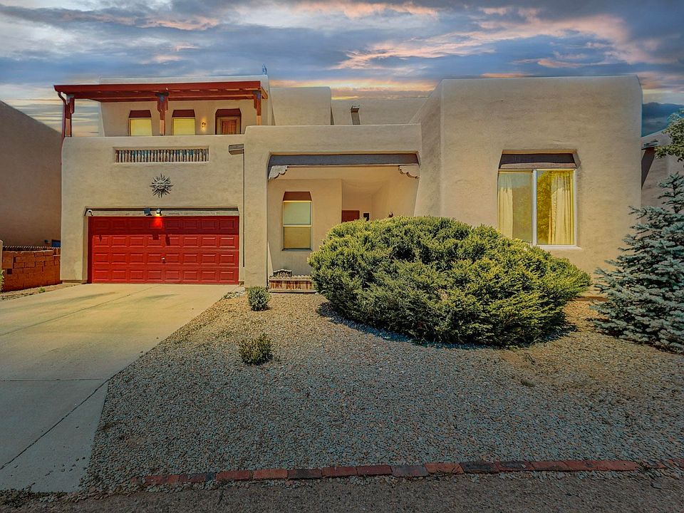 Welcome home to this expansive five bedroom, Pueblo style 2 story residence in the coveted Tierra Contenta neighborhood. This home offers a seamless open concept design. The versatile layout features multiple living areas and dining, ample storage spaces, and dual central refrigerated cooling systems. This home invites you to bask in abundant natural light cascading through cathedral ceilings and skylights, creating a harmonious blend of space and serenity. Breathtaking views from two private balconies upstairs offer a perfect retreat to unwind and soak in the beauty of the surroundings. Outside, the expansive backyard has mature drought tolerant landscaping adorned with flagstone and river rock, all effortlessly maintained by a drip irrigation system. Embrace a lifestyle of leisure and convenience with this prime location that offers proximity to the Santa Fe Country Club, Swan Park, schools, eateries, and a network of scenic walking trails.