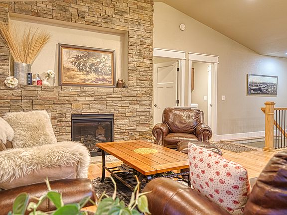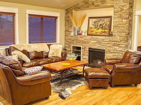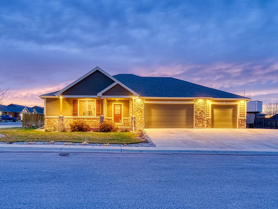 Property is currently under a 48hr First Right of Refusal. Welcome home to this elite rancher in the highly sought after RC Ranch subdivision! You are greeted with elevated ceilings & beautiful hardwood floors that sweep across the majority of the main level. The kitchen boasts walk in pantry, gas range top & granite counters. You'll love the spacious bedrooms and walk in closets. Outside you'll find a beautiful fire pit & recessed lighting perfect for gathering not to mention room to spare for the kids/pets to run and play! Keep the summer fun entertainment going during the winter months with the gorgeous wet bar, spacious family room in the basement plus surround sound system through out the whole house! No need to worry about where to store reactional toys with the corner lot