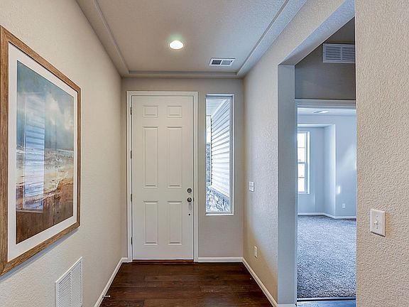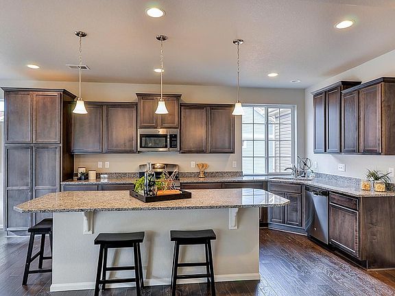 Welcome home to your beautifully designed new home in the Enclave in Thompson River Ranch! Enjoy the luxury of having everything you need on the main floor where the open kitchen, dining and great room provide all of the space you need for entertaining. The gorgeous kitchen has stainless steel appliances with a gas range, New Caldonia granite counters with a 4" backsplash and large eat in island, beautiful Concord Maple Smoke stained cabinets with roll out shelving and dark wood flooring! Looking for the Wow in the master? Your new master suite hosts a tiled spa style walk-in shower, accent tile backsplash, double vanity and Saphire Blue granite counters. The secondary bedroom and bathroom is perfect for your family's needs while the main floor laundry adds the touch of convenience you desire! Need more space? Check out the second story "smart space" which hosts a secondary master bedroom, bathroom suite and loft! Call our Inside Sales Team today!