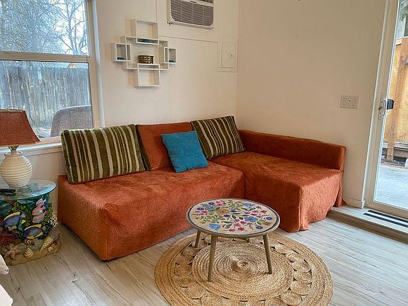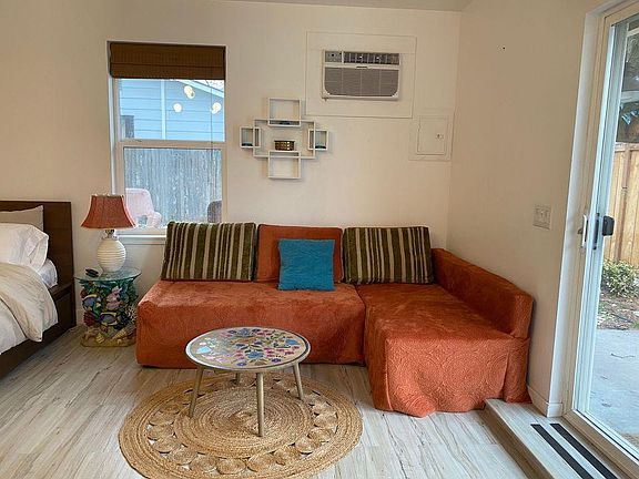 Beautiful, furnished Tiny House Studio with large kitchen, new bathroom, private backyard with deck and two car driveway. Seeking long term tenant. One year lease, then month to month. Must have good credit and references. No pets, please. Utilities Included. One year, then month to month. Non-smoker. Utilities included, except Wifi. Laundry room is on site, but about twenty feet away in the main house. Place is very private. No pets please.