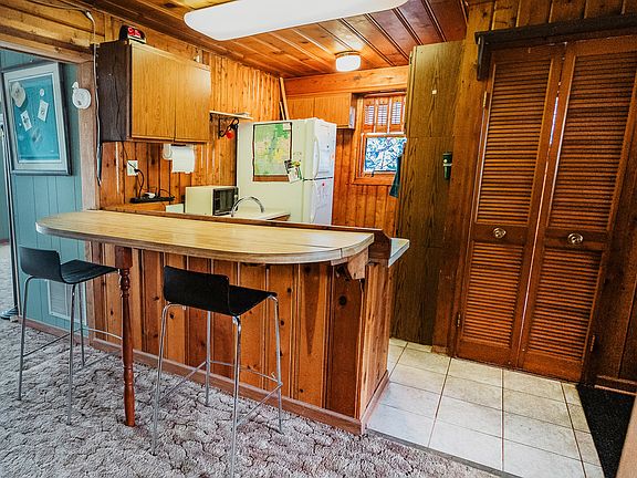 Cozy 1 bedroom, 1 bathroom cottage in the White Oaks Bay subdivision of Wonder Lake. This quaint home features an office space and boasts cedar ceilings and walls throughout most of the home, adding to its rustic charm. Situated just a stone's throw away from the lake, you can enjoy stunning views from the back deck. The convenient proximity to the boat launch and park makes outdoor recreation a breeze. With lake rights included, this property offers the perfect opportunity to embrace lakeside living. Bring your creative ideas to update and personalize this charming retreat to your liking and make this lakeside retreat your own.