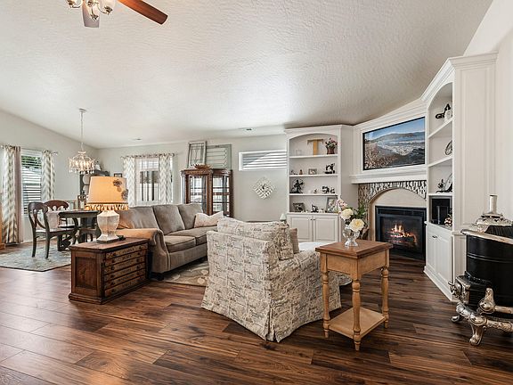Custom features galore in this beautiful rancher in sought after neighborhood! Additional 6 feet of storage in garage,and extra large guest room! Custom light fixtures, fireplace with wall unit, upgraded cabinets and flooring. Bosch Silent Plus dishwasher, custom pantry and laundry room doors. Gorgeous landscaping, fenced back yard, and automatic sprinkler system! You won't find a home like this anywhere!!