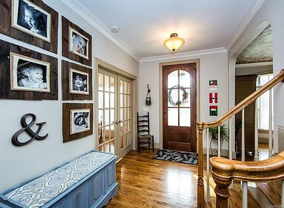 Beautiful custom built home on quiet cul-de-sac street. Wooded backyard is a destination spot, covered porch with custom built swings & paver patio with fire pit, tree house featuring a zip line. Step inside to find an open floor plan with hardwood floors & crown molding throughout main level. Kitchen has 42" cabinets & granite counters w/ large island. Guest suite/ office downstairs with access to full bath. 3 BR's on upper & an over-sized bonus room with built-in sofas, desk & reading loft.