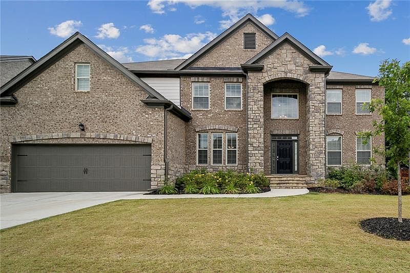 One of a kind architecturally designed three side brick home located minutes from I-985, Mall of GA, downtown Buford, and Buford City Schools. Two story stone entry. Elegant two story foyer and side front staircase with iron balusters. Separate dining room with coffered ceiling. Two story family room with ceiling to floor stacked stone fireplace, stone hearth, built-in shelves, and cabinets. Double bay window. Gourmet kitchen opens to cozy keeping room with stacked stone fireplace, separate eat-in area, back staircase, built-in shelves and bookcases. Quartz countertops, island with sink, stainless steel appliances, designer tile backsplash, and double ovens. Newly added covered screen porch with stacked stone fireplace and cedar deck floors that overlooks private level backyard and lush wooded green space. Bedroom on the main with full bath. Large owner's suite upstairs with trey ceiling, sitting area, bay window, and dressing room that leads to master bath with decorative tile, separate sinks, garden tub, and double master closet. One bedroom upstairs with en suite bath. Two other bedrooms upstairs joined by bath with 2 sinks. Full unfinished basement stubbed for a bath and exterior entry. Extras: 5 inch hardwood floors throughout main floor excluding bedroom, 3 and 1/2 inch wooden plantation shutters, Carrier HVAC system, Honeywell programmable thermostat, Anderson double pan vinyl windows, Pestban built-in interior pest control system, and professionally landscaped. Amenities include bath cabana, swimming pool, playground and walking trails. 2021-06-14