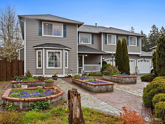 Gorgeous 2-Story home in Sky-Blue Estates in Arlington! 4 BR, 2.5 bath home with 3 CAR GARAGE! Kitchen features gas range, built-in microwave, ceramic title counters, breakfast bar plus small island and pantry. Formal dining area with coffered ceilings just off the kitchen. Slider out to covered deck. Perfect for entertaining! Living Room w/bay window and cozy gas FP. Upstairs has a large landing area/bonus room. Primary BR with private 5 piece bath. Level, Fully fenced backyard with firepit! Located on quiet cul de sac! Don't miss out on this great location and wonderful neighborhood – schedule your viewing today!