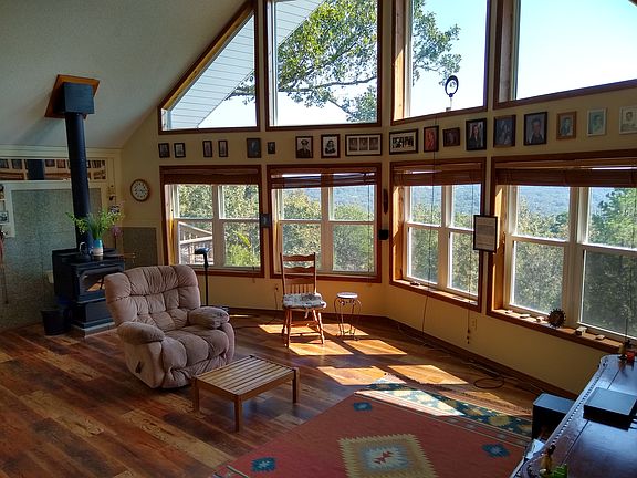 Ever owned a view worthy of "Vista"? Private and well maintained, this chalet style home perched on the mountainside will drop your jaw and make your party guests jealous. Or, keep it all to yourself- the home is well off the road behind a curtain of trees on 7.5 acres. There's plenty of accommodation for your toys and tools as well with two garages (with an unfinished 1br apartment) and cleared spaces large enough for RVs or watercraft. With views like this, there won't be many sunsets until it's gone!