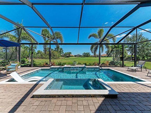 Under contract-accepting backup offers. HUGE PRICE REDUCTION- OWNERS WANT THIS SOLD! Exquisite Pallazio Model, on the 9th Green - A True Masterpiece of Luxury & Comfort . Step into a world of elegance, warmth, and effortless luxury with this breathtaking 3- bedroom plus den , 3-bath Pallazio model home in the sought-after Esplanade Lakewood Ranch Golf Community. Perfectly positioned on the 9th green, this golf deeded residence offers sweeping golf course views and the perfect blend of privacy and beauty. Every detail, has been thoughtfully designed to create a space that feels both elevated and inviting. As you step through the stately double doors, you're immediately welcomed by a custom Van Teal hand-painted light fixture-a striking statement piece that sets the tone for the elegance within leading to an open, sun-drenched floor plan, soaring tray ceilings, and elegant finishes. The natural light pours in through expansive sliders illuminating the seamless indoor outdoor flow that makes this home perfect for entertaining or simply enjoying the beauty of every moment. Your huge primary bedroom is more than just a place to rest-it's a sanctuary. With ample space for a sitting area, this suite invites relaxation and tranquility. The spa-like en suite bath is a dream come true, complete with a soaking tub, a glass-enclosed shower, and dual vanities, all designed to create a sense of calm and indulgence. The custom walk-in closet is equally impressive, offering abundant space and organization for your wardrobe. A Gourmet Kitchen Designed for Culinary Delights for those who love to cook and entertain, the gourmet chef's kitchen is nothing short of perfection. Featuring a Monogram gas cooktop with a stainless hood, an LG see-through refrigerator, a built-in wine cooler, and a massive kitchen island, this space is as functional, as it is beautiful,. The extended kitchen upgrade provides extra room for storage and meal prep, ensuring every culinary creation is effortless. This home offers Spacious & private Guest Suites. Each of the generously sized guest bedrooms comes with its own private bath, creating a welcoming and comfortable retreat for family and friends. Florida living is all about enjoying the outdoors year-round, and this home makes that easy with an expansive, covered lanai. Imagine hosting lively gatherings or peaceful. evenings with a fully equipped outdoor kitchen, a cozy gas fireplace, and breathtaking golf course views. The heated salt water pool. and spa-all enclosed within a screened lanai-create the perfect setting for relaxation and rejuvenation. This home sits on one of the most coveted lots in the community, offering a rare combination of privacy and breathtaking golf course views. Plus, you're just a 5-minute walk from the incredible Esplanade amenities. An unparalleled lifestyle with a Championship 18-hole golf course with a driving range, practice bunkers, and putting greens, 6 lighted Har Tru tennis courts with lessons and clinics, Vibrant pickleball community for social and competitive play, Resort-style pools with cabanas and a poolside Bahama Bar, The Barrel House restaurant, offering gourmet dining experiences, Full-service wellness center with a state-of-the-art gym and relaxing therapeutic spa treatments. This isn't just a home-it's a lifestyle. lts mornings with coffee on the lanai, afternoons on the golf course, and evenings by the fireplace with loved ones.
