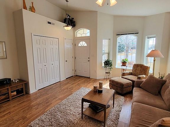 Beautiful, Immaculate Regency Crest Townhome! One Owner. This ranch style home features an Open floor plan with main level living at its finest! Vaulted Ceilings, Bay window in Living room. Spacious kitchen with granite countertops in kitchen and custom tile work backsplash. Walk in pantry closet. Master bedroom/master bathroom with huge walk-in closet, beautiful and roomy tiled walk in shower in Master. Tile floors. Granite in baths as well. Large 2nd bedroom with big windows to let in extra day light. The office with french doors and has a closet so could be 3rd bedroom. Central air, 2 car garage. Handicap accessible! Beautifully landscaped, covered patio, wood fence, and sprinkler system installed in front and back. Mature Trees. Garage floor has epoxy finish for easy cleaning and it looks great! Possession will be no sooner than June 1, 2022