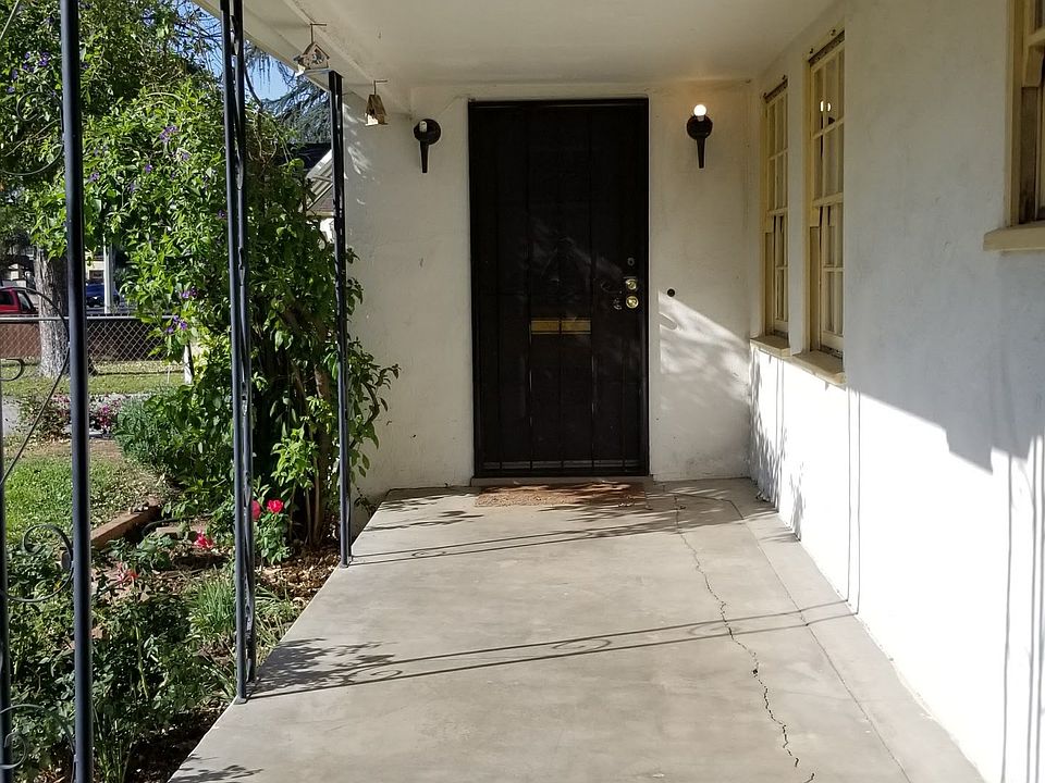 front/back yard fenced, 997sf, Living rm, dining rm, wood floors, vintage 1941, front porch, ceiling fans, window A/C, shed, oven, washer/dryer hook-ups inside & in garage, workshop in garage, NO smOking.