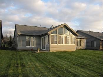 Listing agent: Judi, Phil and Brad Stinson, Call 260-469-1947 for information. Enjoy Care Free Villa Living. Overlooks Fishing Lake. BRING US AN OFFER - Large cathedral great room. Wood/Ceramic surround fireplace W/gas starter/log. Shares open concept W/Dining Area & Kitchen. Harlan Cabinetry, Wood parquay entry foyer, Natural woodwork, 6 panel doors, Pella windows, Porch added 1998 & 2008 enclosed as Sun room w/windows. Roof Tear off 2007. Kitchen features California lighting, breakfast bar, pantry & desk area. 2 BR's have walk in closets. Master Bath w/Double Sinks & Makeup Vanity. All Appliances Remain-Refrigerator, Range/Oven, Microwave (New 2007), Dishwasher, Disposal, Washer & Dryer. Master 10x6 Walk In Closet. Ceramic Tile Above Shower & Tub/Shower Units. 2 Windows Updated in DinRm & Master. Built By Colonial Homes. Garage has side service door, pegboard & pull down stairs to attic storage. Utility mo avg: Elec $20 Gas $75 Qtrly dues $360.00-Cover snow removal drive/sidewalk, lawn care, exterior paint, fertilizer/edging & irrigation system (No Roof).