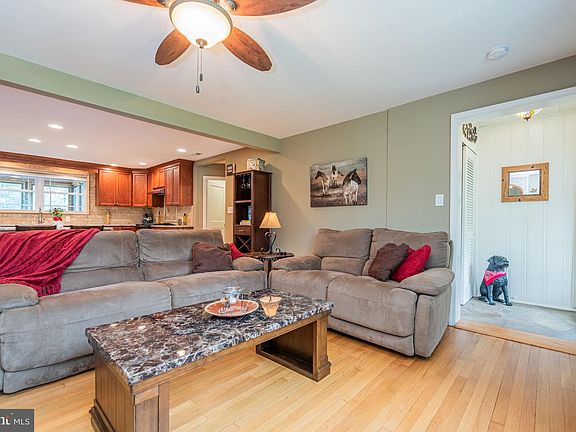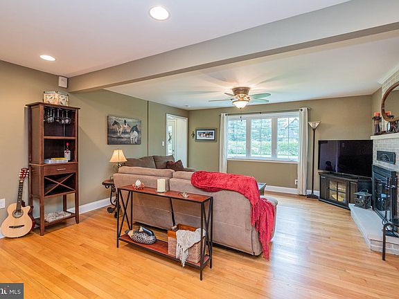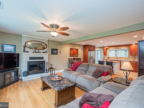 Beautiful rancher in the historic Glyndon neighborhood and on a private cul-de-sac highlighted by an oasis for entertaining that includes an in-ground pool, patio with lounge area, and a spacious deck that allows for easy indoor and outdoor living. Arrive into the main level and experience an open floor plan, gorgeous hardwood floors, and a wood-burning fireplace with a brick surround. Let the gourmet kitchen inspire delectable delights featuring a center island with a breakfast bar, ample storage, a ceramic tile backsplash, stainless steel appliances, granite counters, and an entrance to the three-season sunroom that overlooks mature trees and the sights and sounds of nature. Relax and unwind in the tranquil primary bedroom suite offering a vaulted ceiling, a jetted soaking tub, heated flooring, a walk-in closet, and a glass door walk-in shower. Four additional bedrooms, a full bath, and a powder room complete the sleeping quarters. The fully finished lower level provides many possibilities as a fitness area or a den accented by cedar, plush carpet, a bar area, and access to the fenced yard. A one-car garage, two driveways, and an additional entrance to a private office are ideal for a work-from-home setting. Major commuter routes include I-83, I-695, and I-795. Updates: HVAC, Kitchen Cabinetry, Flooring, Driveways, Privacy Fence, Attic Insulation, Chimney Liner System, Mini-Split, Appliances, Zoned Heating