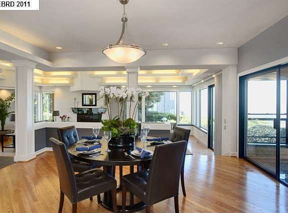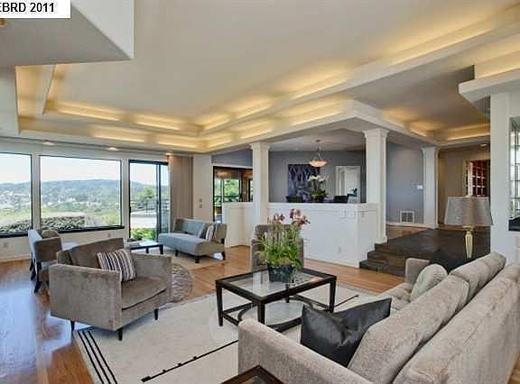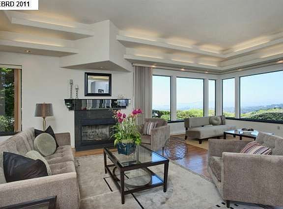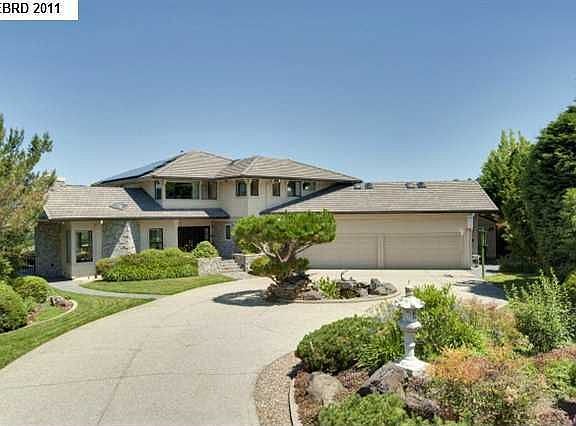Welcome to this wonderful custom Mission style home offering amazing canyon vistas from almost every room. The flexible floor plan, dramatic wood ceilings, expansive decks and ideal indoor/outdoor flow are just perfect for entertaining or informal living. The main outdoor deck area, accessible from the living room, dining room and family room, is more than just a deck. It is a well planned space that really creates another "room" . With 4000+square feet, there is room for everyone and all their many activities. Come home, relax on the deck and let the stunning natural beauty of the canyons surround you. This four bedroom, four and a half bath home features soaring wood ceilings, three fireplaces and a first floor bedroom and bath with wide doorways for special needs. This is a home for those who appreciate attention to detail. Easy access to freeways, regional parks and Bay Area business centers. Enter through the arched doorway to a grand tile entry leading to the warm living room with fireplace and generous formal dining room with vaulted wood ceiling extending into the kitchen. Do you love to cook? The eat-in kitchen offers granite counters, stainless appliances, a 6 burner gas cook top, double ovens, 2 sinks and a pantry. A large family room, with fireplace, wet bar and raised wood ceiling, guest half bath, storage closet and first floor bedroom and full bath complete the main living level. There are hardwood floors in the living room and dining room; tile floors in the entry, kitchen and family room. The upper level includes the master suite with sitting room (with sink and refrigerator). Enjoy the sitting room, with kiva fireplace, and access to the balcony with sweeping canyon vistas. The master bath, with double sinks, whirlpool tub and separate shower is a treat. There are two walk-in closets, one featuring a vanity and sink. There is another bedroom and full barh at this level.  The lower level offers a bedroom and full bath. There is access to a huge area for possible expansion, with eight foundation piers already in place. Other features include four zoned heating and solar panels. The three car garage is configured as a space for one car and a tandem space for two cars.