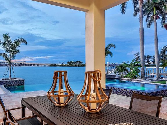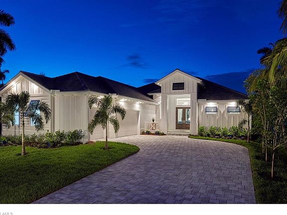 Live the life of luxury in this new constructed home with deep water gulf access. This 4Bed, 3Bath, 3.5 car garage Nautical style home - 'Yachtsman' model. Interior upgrades utilized in this coastal design include; Cambria counters, White Oak flooring, Over $40k appliance package, complete with feature such as hidden catering kitchen and Thermadore gas range designed exclusively with Chef Shannon Yates, floating shaker cabinetry, custom bar and Cambria Quartz kitchen backsplash, wood ceiling accents, shiplap feature walls. Lighting/Fan include Corbett, Crystorama, Hudson Valley, Savoy, Minka, Fanimation, Carrier HVAC system w/ dehumidification control, LED recessed lighting and switch plates with hidden screw/fasteners. Quartz clad interior walls with recessed floor lighting. Exterior upgrades include; PGT WinGuard glass package (no shutters required), 10' 90°-corner sliding glass doors, concrete stucco soffits with composite fascia (in lieu of ventilated aluminum overhangs), powder coated custom aluminum corbels/brackets/louvers. Infinity edge Spa and pool with summer kitchen, Home is professionally furnished which is optional.