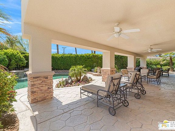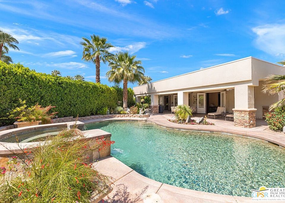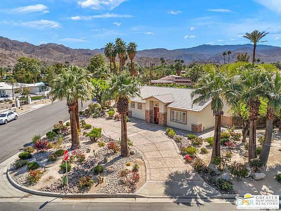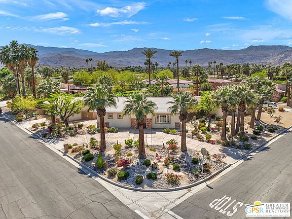 Introducing this one-of-a-kind, South Palm Desert home located at the coveted streets of Old Prospector Trail and Deep Canyon. This home has undergone a complete, bespoke transformation inside and out from its 1950's origins and has been immaculately taken care of. The expansive front yard includes pristine desert landscaping and an expansive, circular driveway that truly is stately. As you enter, you'll love the soaring ceilings, lighting galore and a foyer that guides you to the elegant living room with custom cabinets, fireplace and entertainment center. The Gourmet kitchen with thick granite countertops, stainless steel appliances including a gas stove top and a massive island making the heart of the home. The dining area is conveniently adjacent to the kitchen with custom wet bar right by the breakfast/lounge areathis is very intelligent floor plan. Both bedrooms are very custom with one equipped with a lovely en suite bathroom and the other with office area and large French doors leading to your backyard oasis. You are in for a complete tranquil experience with your ultra-private, desert oasis backyard featuring multiple areas for dining and lounging under the expansive covered patio, an oversized pebble tec pool, elevated spa and mature landscaping. Other features include an expansive detached, 2-car garage with a large bonus room where the possibilities are endless and a great value add opportunity and no HOA's. South Palm Desert is close to El Paseo, shopping, dining, entertainment, recreation & everything amazing the desert has to offer. Come experience Desert living today!