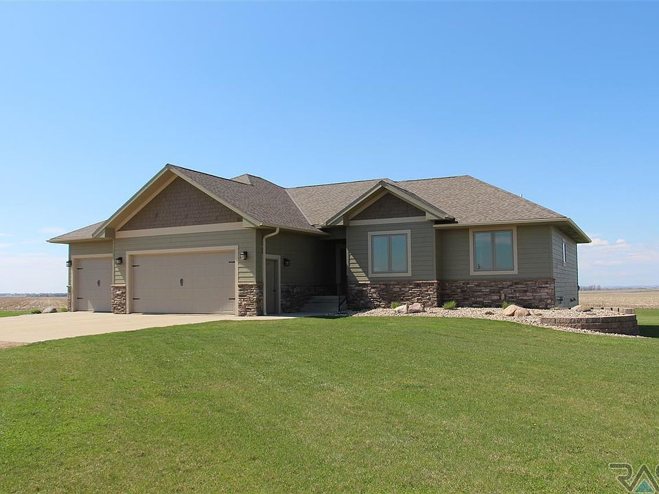 Your home search is over! This executive acreage has everything you need and more. A beautiful stone fireplace welcomes you as soon as you walk in the living room that is open to the kitchen and dining area. The kitchen will surprise you with it's huge hidden pantry. If grilling is in the your future, just step out the sliders to the covered deck and patio areas. Three bedrooms on the main level are accompanied by the perfect master suite, another full bath, your dream laundry room, and a mudroom with lockers and 3/4 bath. You'll never run out of room in the basement with a large family room, two more bedrooms, 3/4 bath and an office. If you need more room for toys, the shed is the perfect spot. 64x45 worth of free storage with 16 foot side walls, all concrete floors, a drain, and an overhead door. An established tree belt, lawn, and beautiful landscaping make this better than building. All this rests on 5 acres of peace and quiet only 20 minutes from Sioux Falls. Call today!