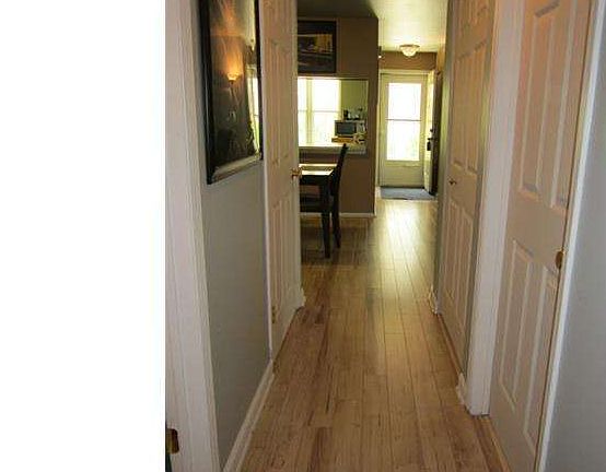This 2 bedroom, 2 bath, first floor condo is a must see! Enter this unit to an open Living room, kitchen & dining area. This home features two patios, one with storage shed. Full kitchen includes all appliances (gas range). Laundry room includes washer and dryer. This home has hardwood laminate, which greets you as you walk into the home, and continues into the dining room and down the hallway. Every room has been tastefully painted. Its location on a private cul-de-sac and front-end view make this house feel like home.